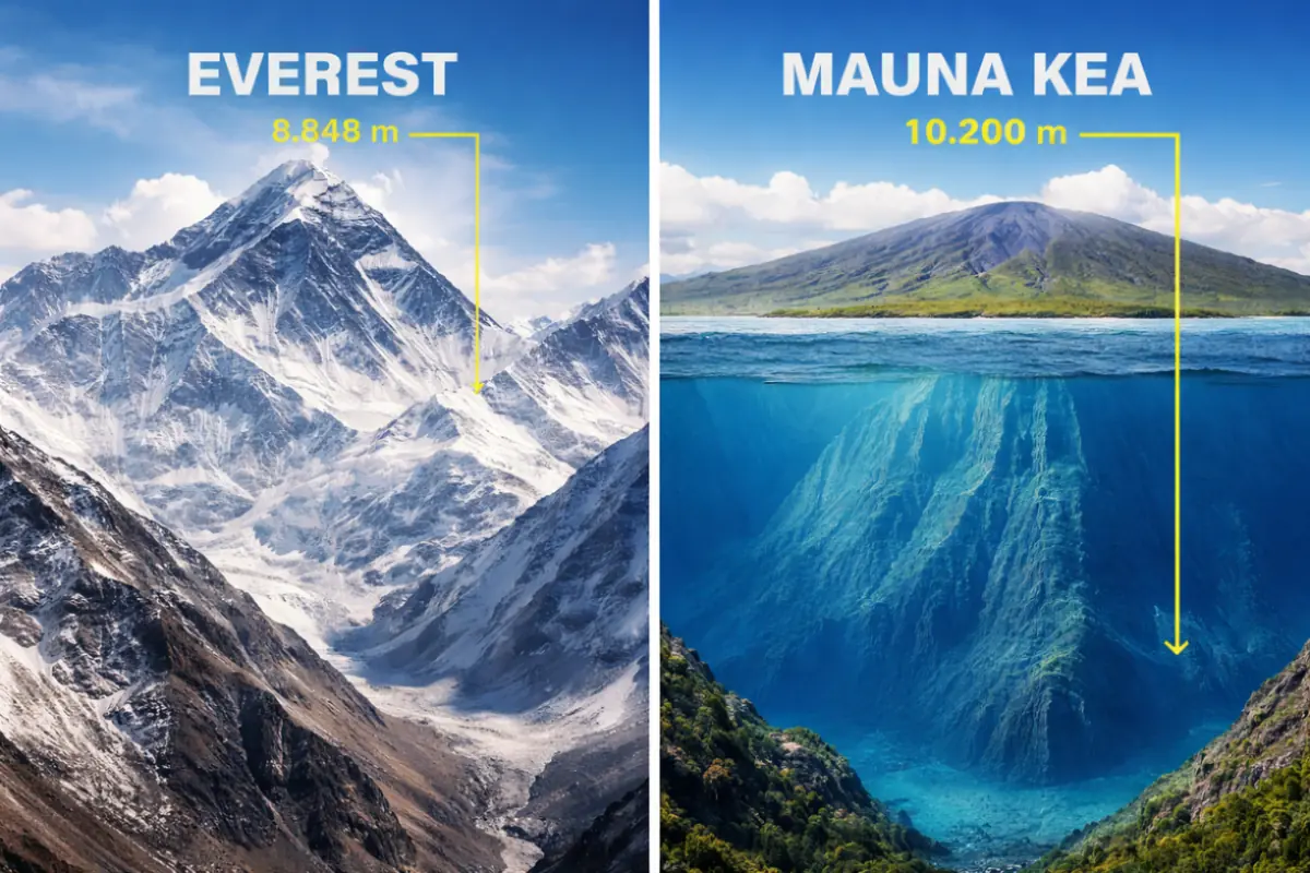 Se, infatti, prendiamo in considerazione l’altezza della montagna dalla base alla vetta, il Mauna Kea, pur essendo “solo” 4.207 metri sopra il livello del mare, emerge dal fondo del Pacifico, dove la sua base si trova a più di 6.000 metri sotto l’acqua. Se misurato dal fondo dell’oceano, il Mauna Kea supera i 10.200 metri di altezza, superando di gran lunga l’Everest, che resta a 8.848 metri. Quindi, in base a questa misura fisica, il Mauna Kea è più alto dell’Everest di circa 1.400 metri.
